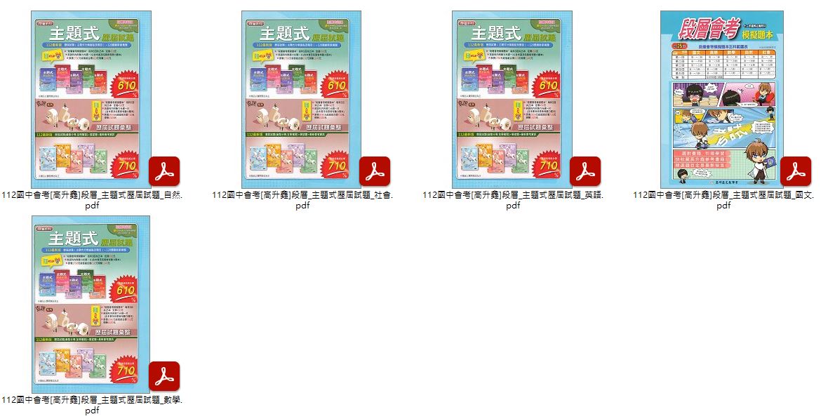 112年國中會考 [高昇鑫]段層系列 主題式歷屆試題 + 直說系列 3600歷屆試題彙整 + 直說系列 會考模擬題本 試題光碟