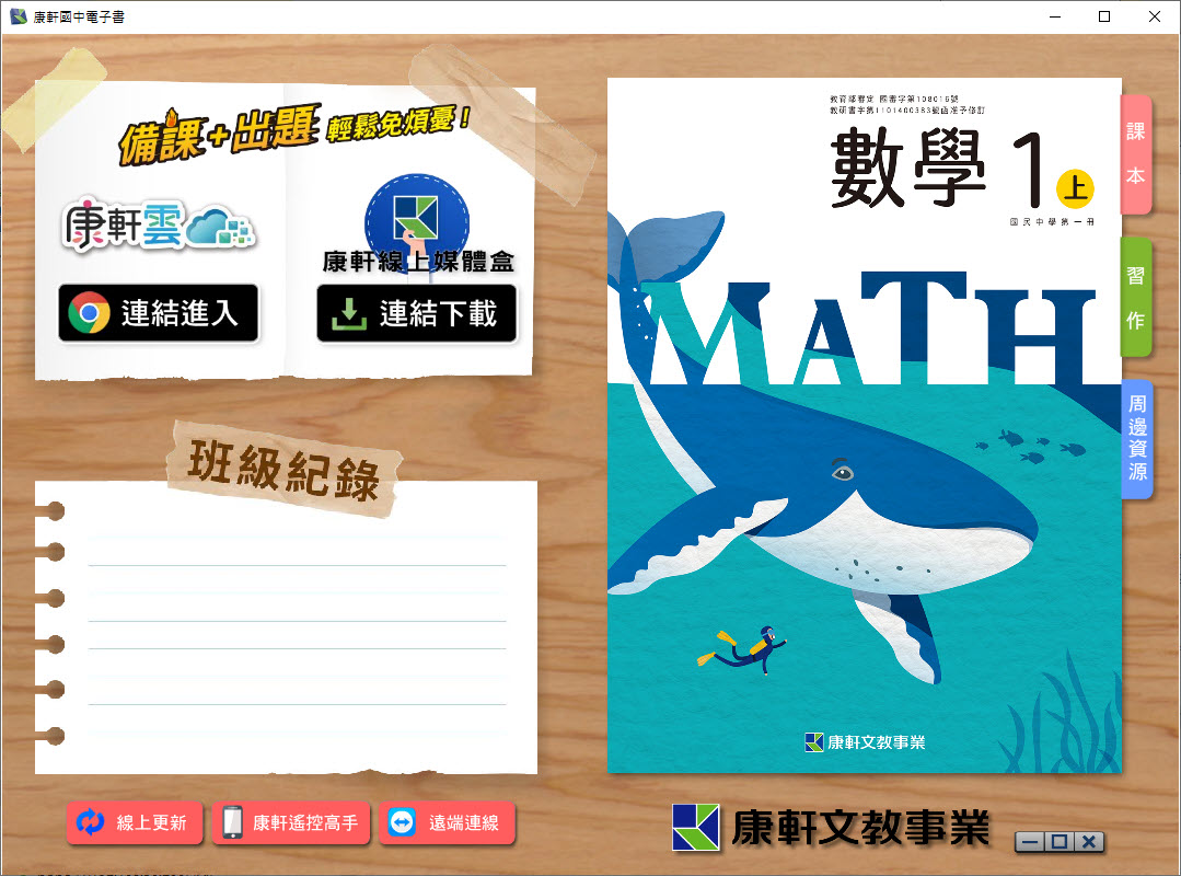 112學年上學期 國中 康軒版 數學電子書 1年級(含課本、習作含解答、教學資源)教學光碟