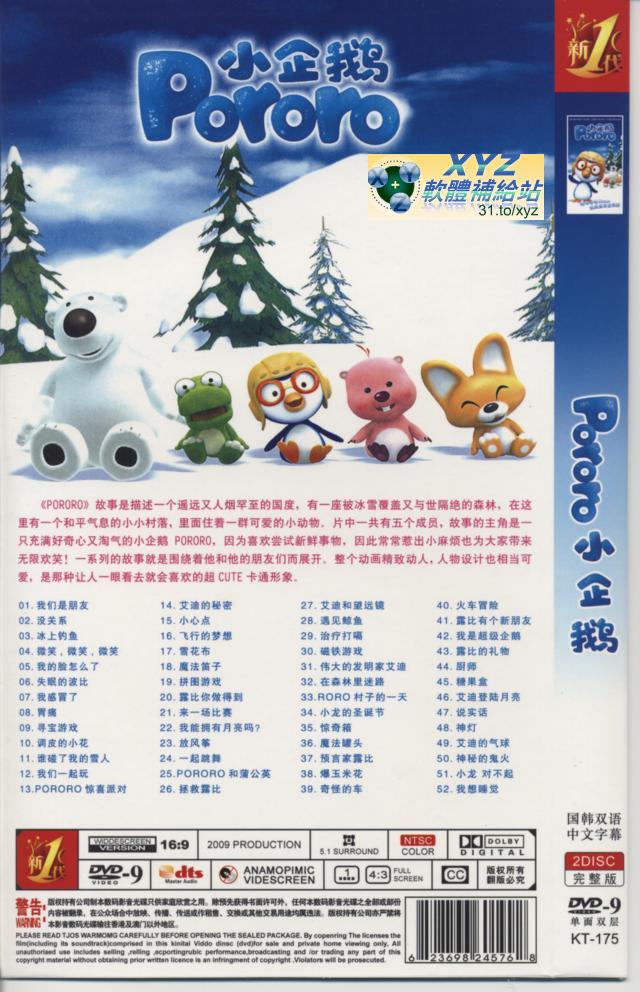 • 藍光畫質版 小企鵝全集 pororo 001-104集(完)+電影版 pororo 聖誕城堡 國語/英語/韓語發音 繁體中文語言字幕版(幼兒教學)(適用任何家用DVD播放機)(3DVD)