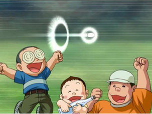 合畫面上的狀聲字與速度線出現時機以 Wii 遙控器模擬揮桿,就能擊出長遠的好球。當